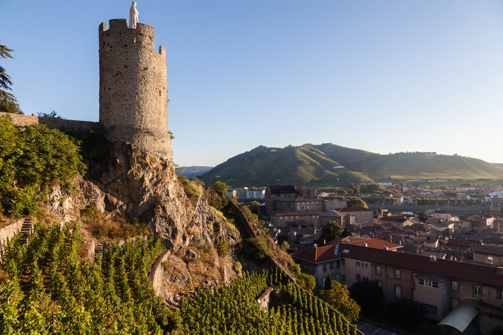 Planté en coteaux par les Romains il y a 24 siècles, ce vignoble réputé se répartit entre la Côte Brune, en amont du ruisseau du Reynard et la Côte Blonde en aval. Composée quasi-exclusivement de Syrah, la Côte Brune donne un vin puissant et intense. La Côte Blonde affirme une plus grande subtilité grâce à la présence de Viognier qui sublime la Syrah. Cette appellation doit au Château d’Ampuis, cette très belle légende : “Le Seigneur de ces lieux avait deux filles, l’une brune comme la nuit, l’autre blonde comme les blés. Il les dota en donnant à chacune l’un de ses meilleurs coteaux lorsqu’elles convolèrent en noces. Il nous reste en héritage la Côte Brune et la Côte Blonde”